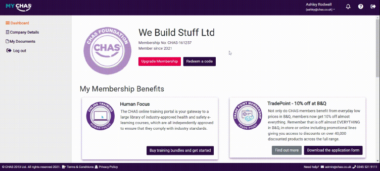 Our online Contractors Portal to create and manage your CHAS account, this is where you’ll complete your accreditation and manage your membership. Go to my.staging-chas-co-uk.stackstaging.com/builduk