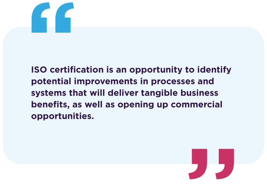 ISO certification is often a pre-requisite of clients and commercial tenders. But ISO certification can also bring operational benefits and differentiate your business to customers, staff, investors and other stakeholders.